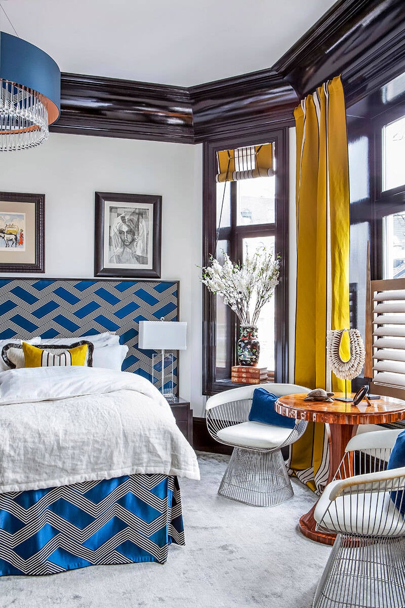 Ta ut svängarna och inred med grafiska mönster och geometriska former à la 60-tal. Välj två komplementfärger för fin effekt, här har man till exempel valt blått och gult, två lekfulla färger som passar bra ihop.