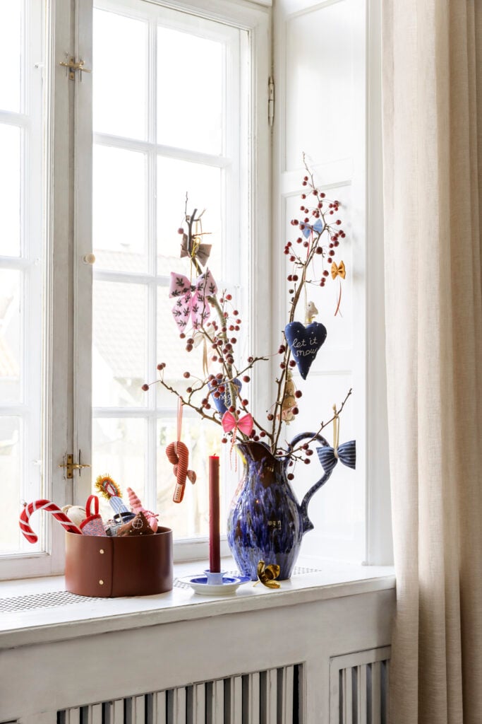 I väntan på att julgranen, låt julpyntet redan innan skapa stämning som här hängande i ris.