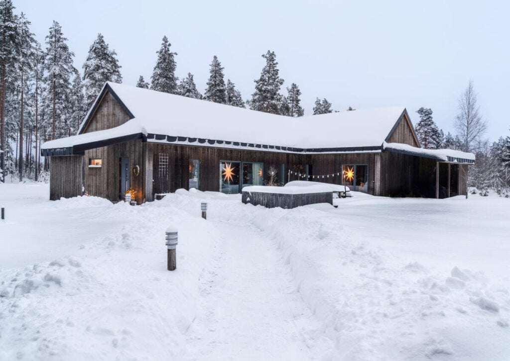 Inbäddad i vita snömassor och träd som nästan bågnar under gnistrande vit nysnö ligger huset med en fasad av järnvitriolbehandlat trä Det var just närheten till naturen som fick Lydia och Alexander på fall.