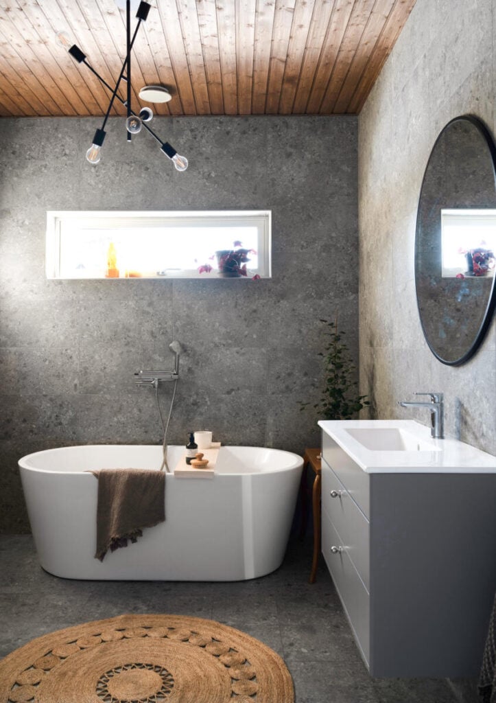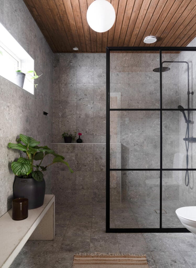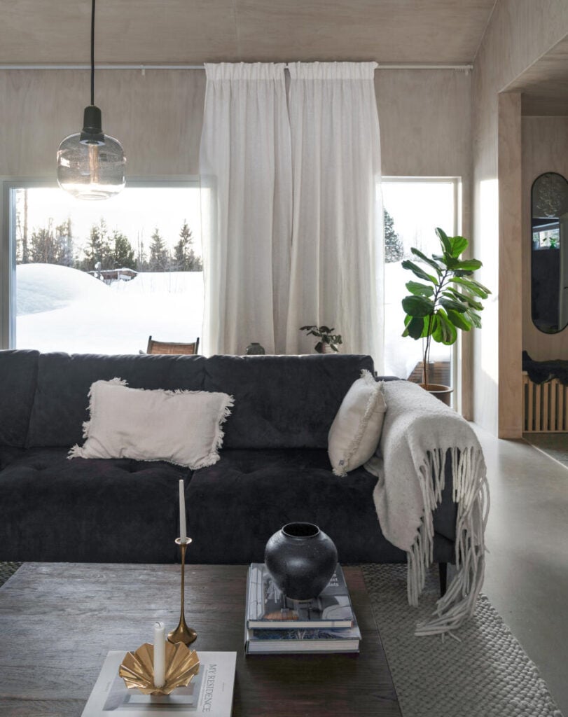 Som kontrast till väggarnas och innertakets trämaterial har paret valt ett betonggolv i alla rum utom badrum, tvättstuga och hall.