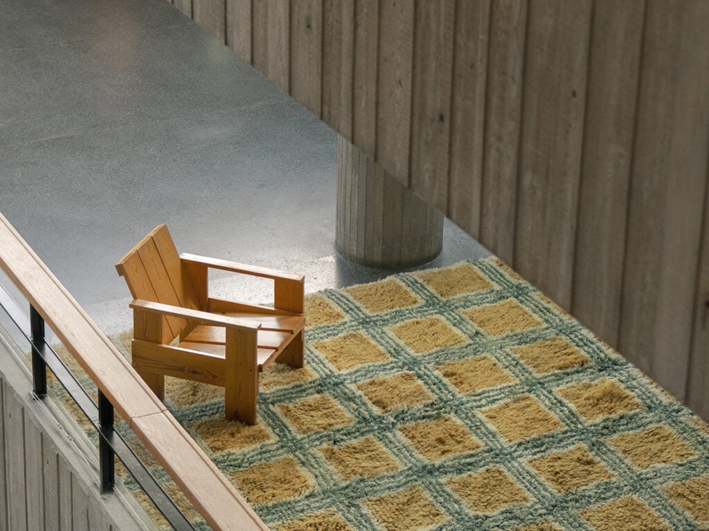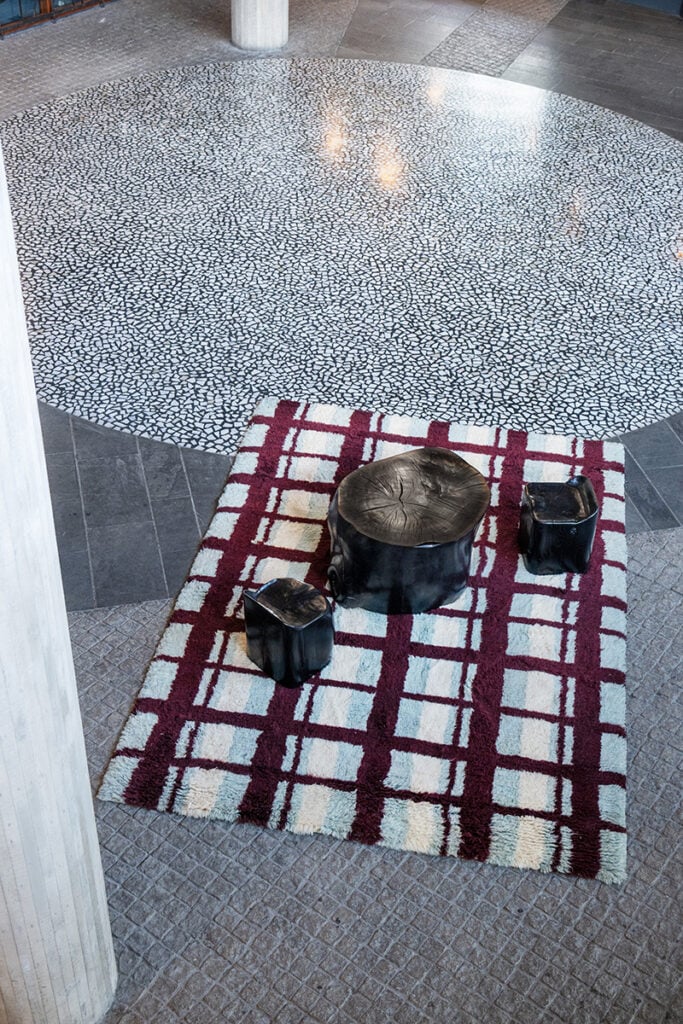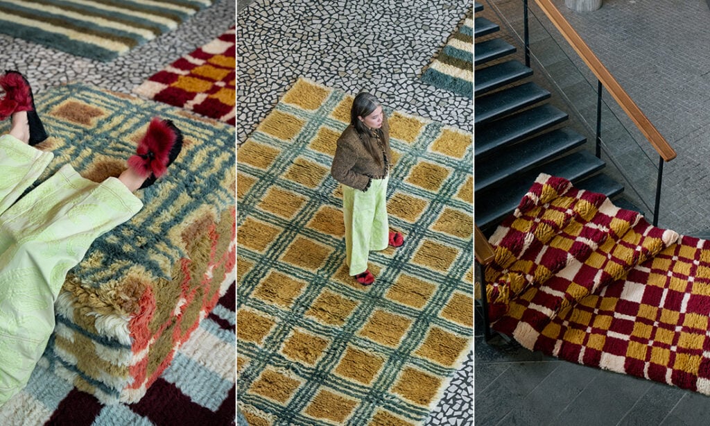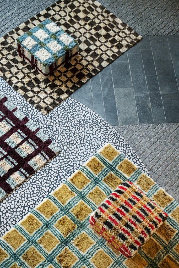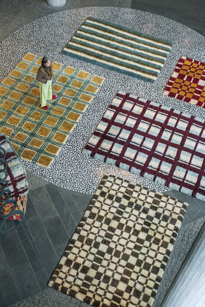 Handvävda ullmattor i grafiska mönster tar plats i Layereds nya kollektion i samarbete med konstnären Evelina Kroon.