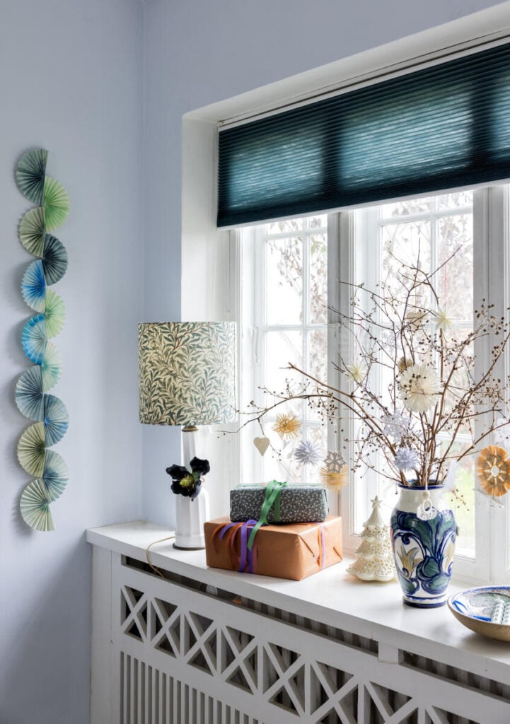 – Jag älskar att ha tid att vara kreativ och fördjupa mig i ett gör-det-själv-projekt medan jag lyssnar på julsånger på högsta volym. Det är det bästa sättet att komma i julstämning på, säger hon. I år har den kreativa stylisten bland annat gjort en krans av silkespapper och pärlor, samt en girlang av papper målat med akvarell. Mette Kirstine älskar också att slå in julklappar, och om hon är tidigt ute med julklappsshoppingen låter hon klapparna ligga framme som dekoration.