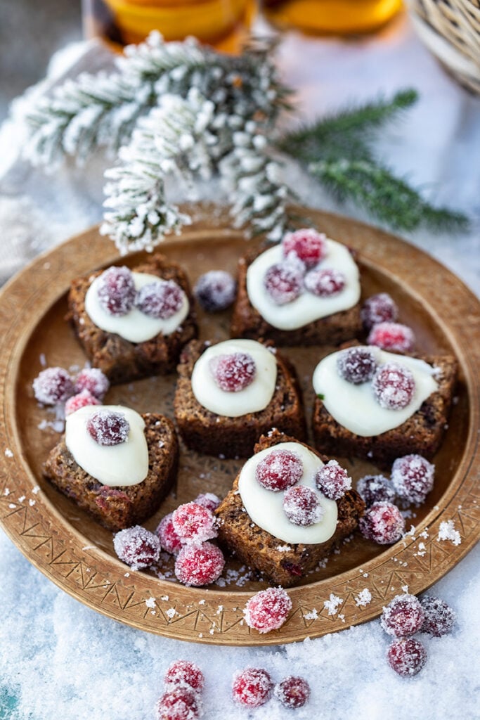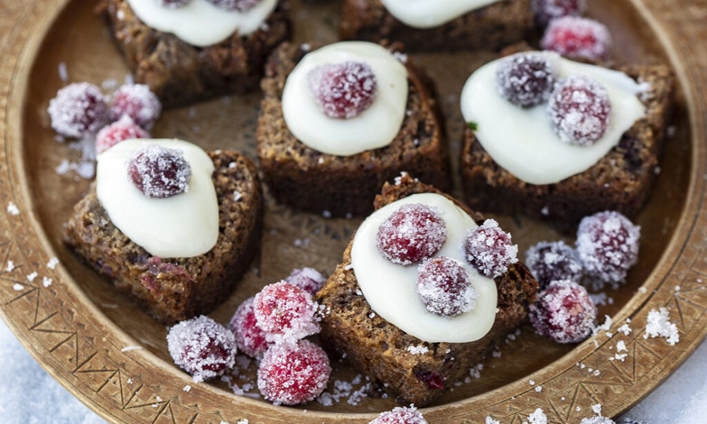 Mjuk pepparkaka med färskostfristing och frostade tranbär kommer göra succé till advent. Se hela receptet här!