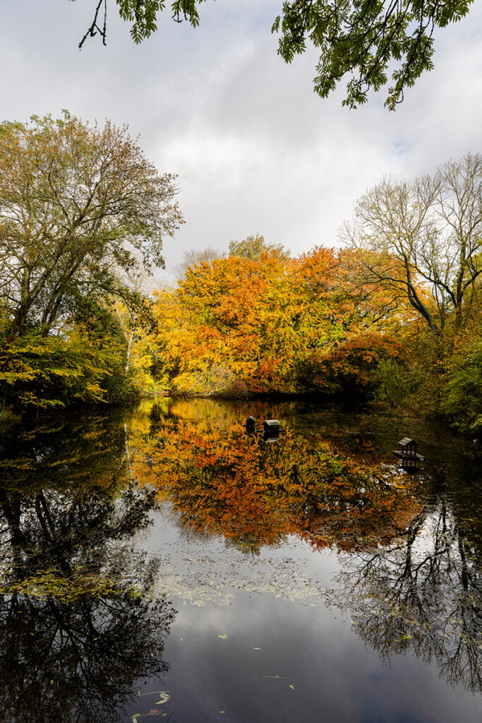 Läget kunde inte vara bättre. Huset är omgivet av storslagen natur, med ståtliga träd, små sjöar och ett rikt fågelliv. Villan, som ligger inbäddad i grönskan intill parkområdet Smörhullet i Helsingör, är dessutom helt omöjlig att upptäcka från vägen.
