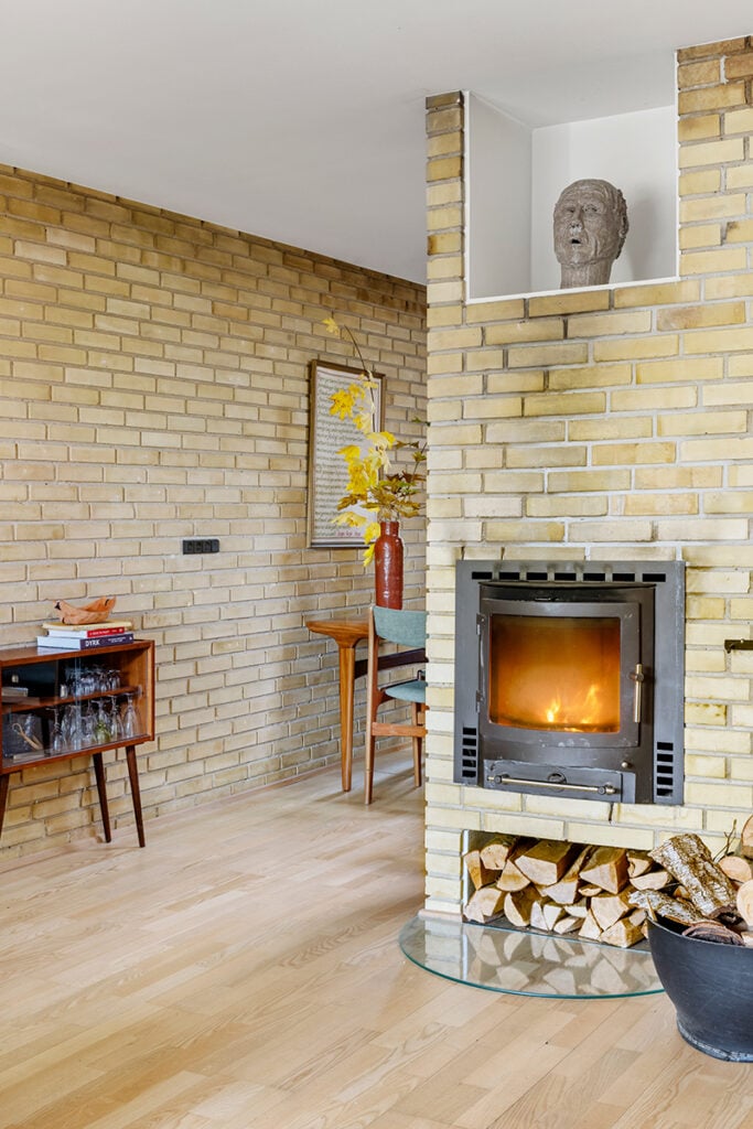 Hon delar hemmet med sina två barn, Ask och Vilde. Tegelvillan, som är 135 kvadratmeter stor, ritades 1967 av arkitekten J. Schmidt-Sørensen.