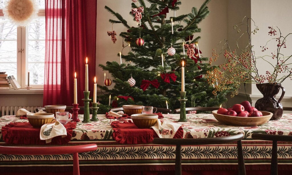 Julen 2025 på Ellos Home bjuder på allt från rosetter och volanger till stilrena ljusstakar och välkomnande juldukar.