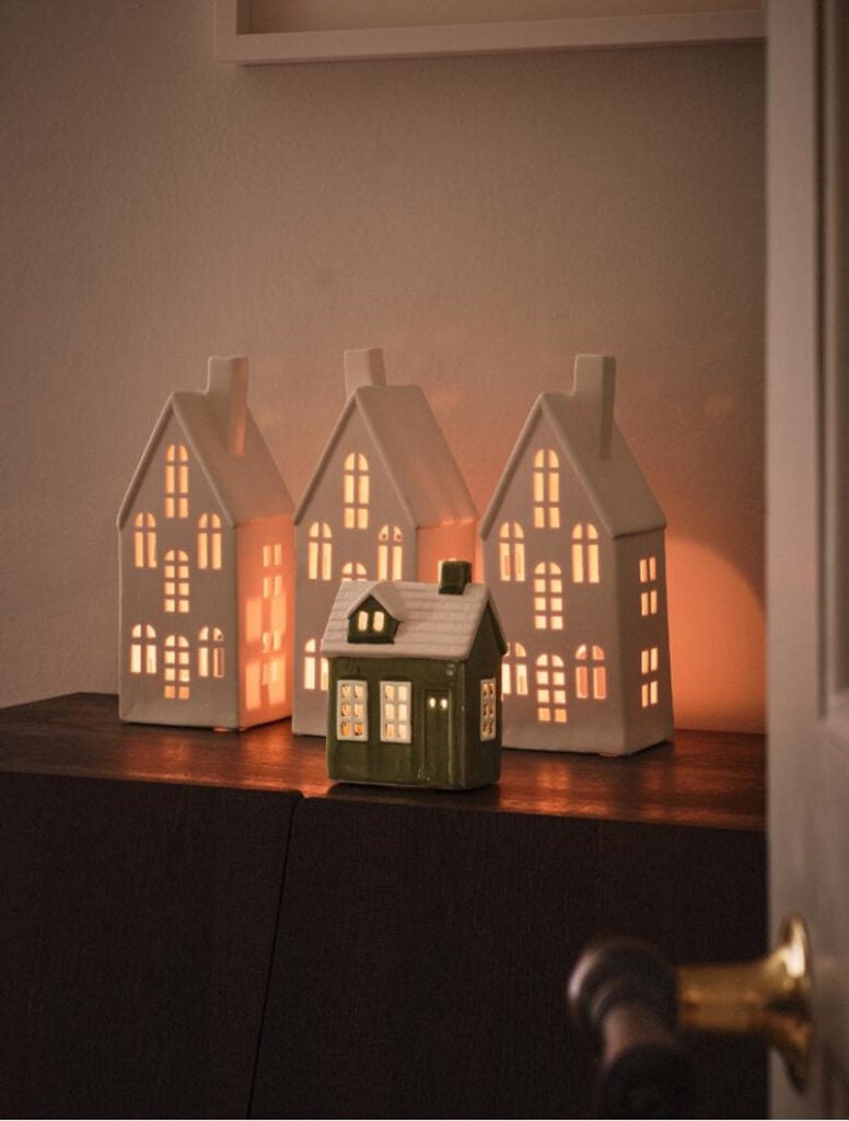 Bland nyheterna finns även husformade ljuslyktor, julstrumpor, juldukar och band att dekorera paket eller granen med. Se bilderna från kollektionen här nedan.