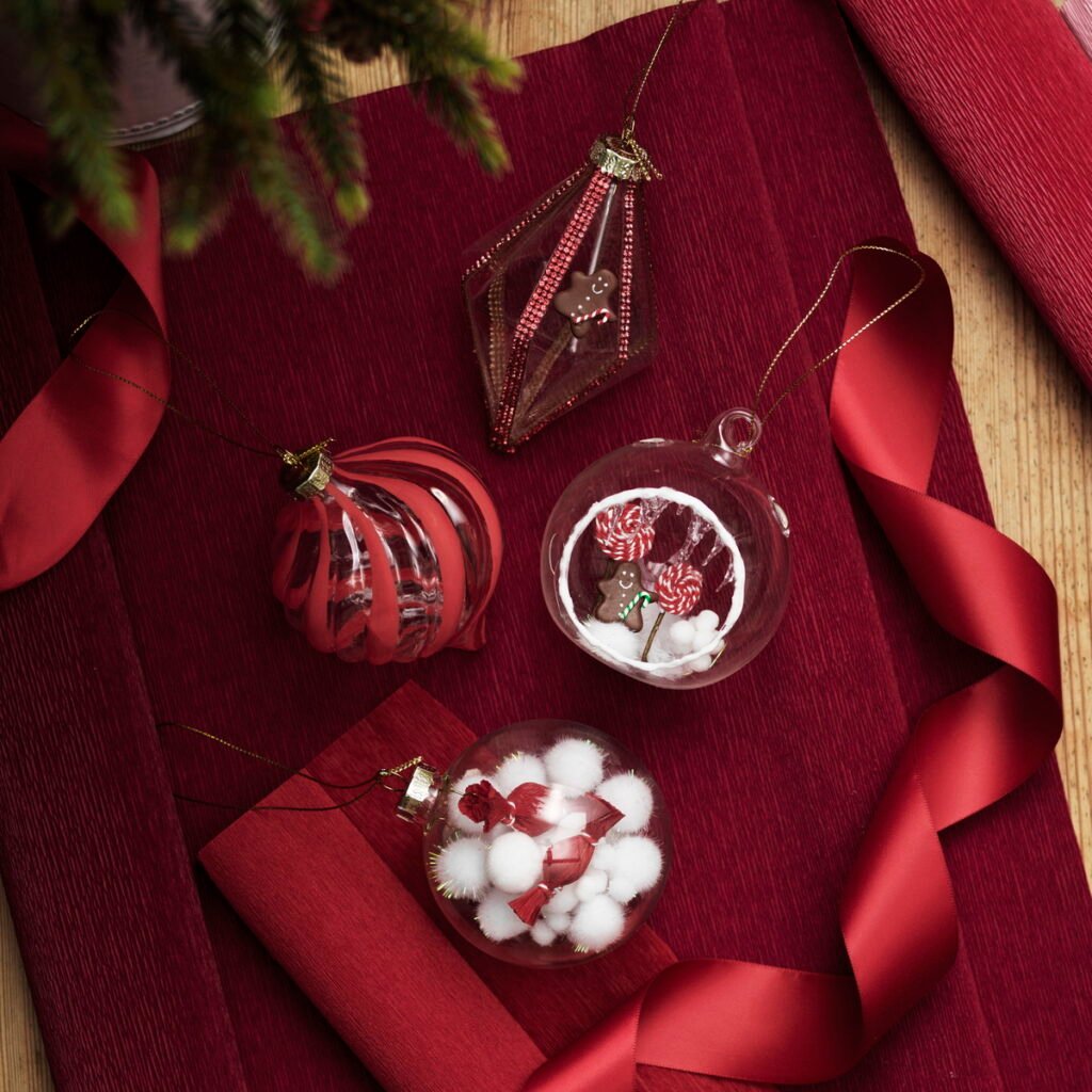Ytterligare ett sätt att göra julkulorna mer personliga är att fylla dem med favoritsaker – från godis till små detaljer.