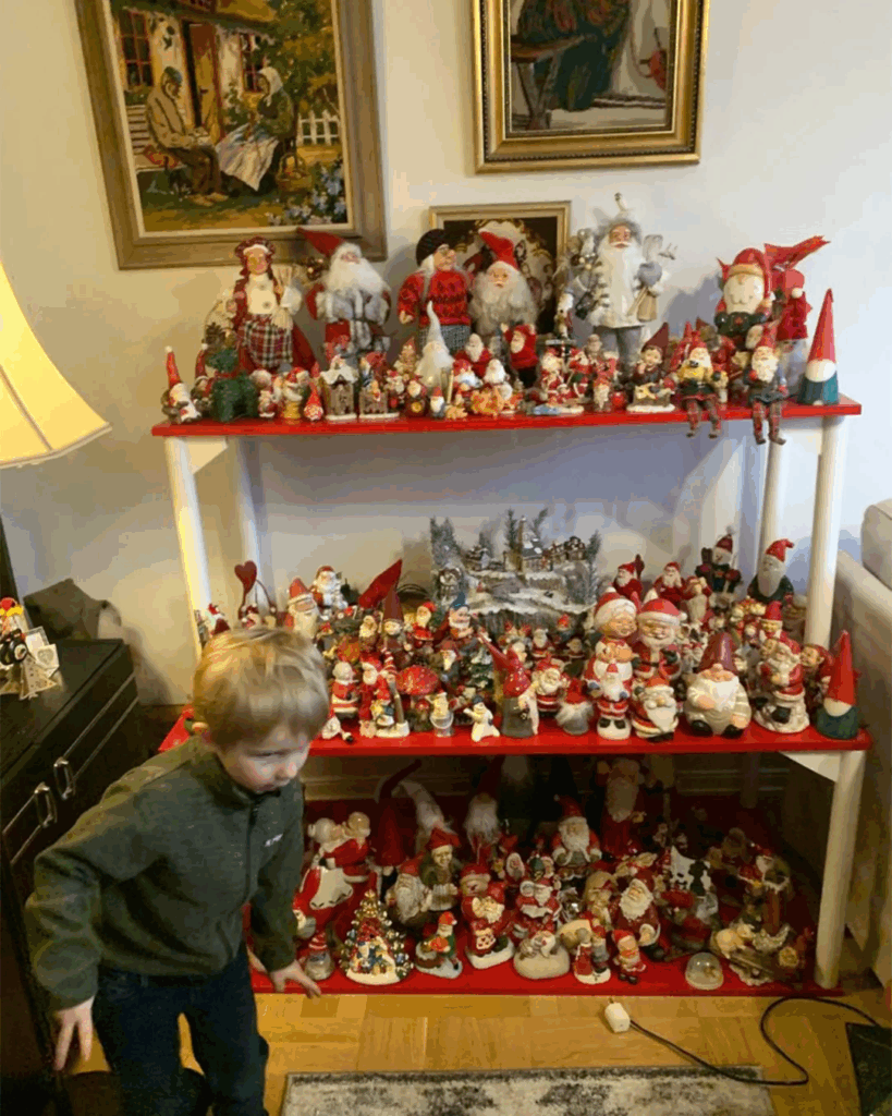 Med mycket kärlek plockade Kevin ut dessa tomtar och lade till dem i den egna, digra samlingen av julgrejer.