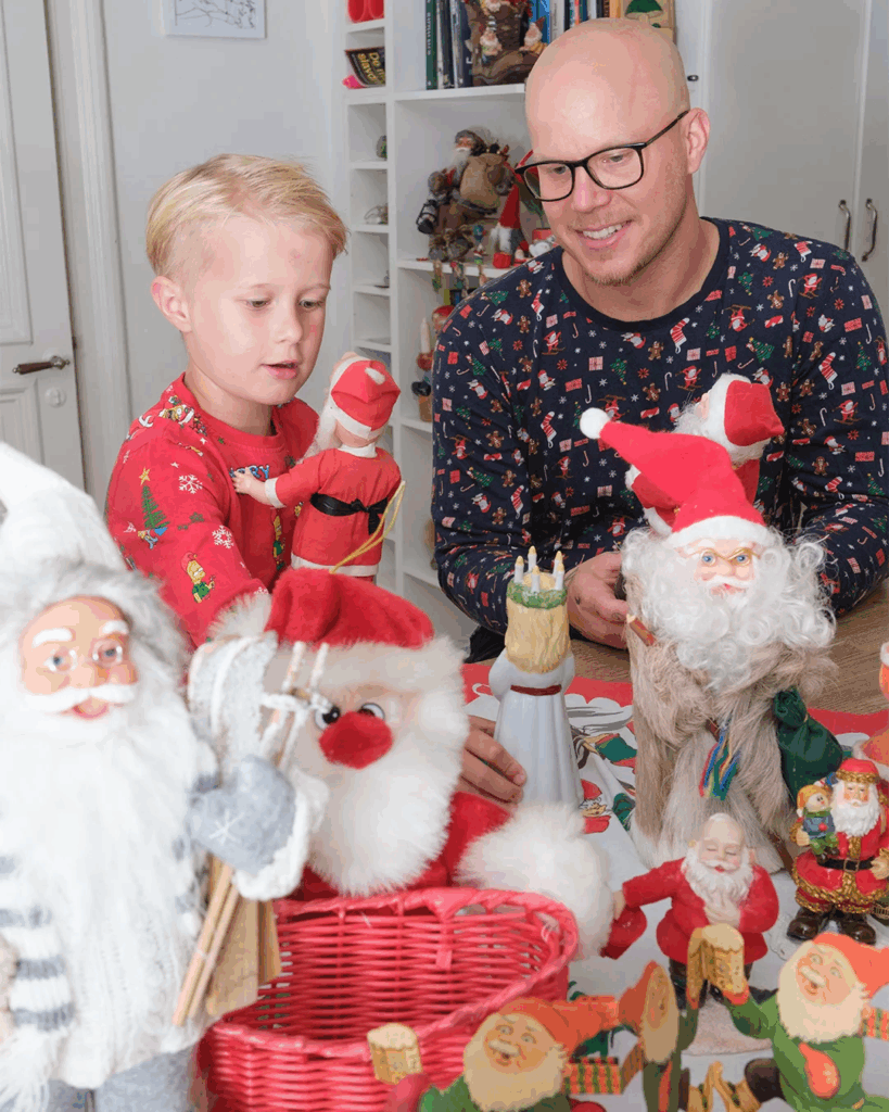 – Precis som när jag själv var liten blir hans ögon större än vanligt av att gå runt och titta på alla fina tomtar. Det märks vem Milo har att brås på när det gäller att älska julen.