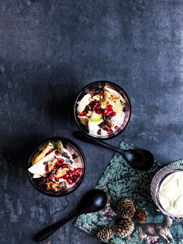 De syrligt-söta granatäppelkärnorna är både vackra och smakrika. Använd dem för att en fräsch och spännande smakbrytning julens sallader, drinkar och desserter.