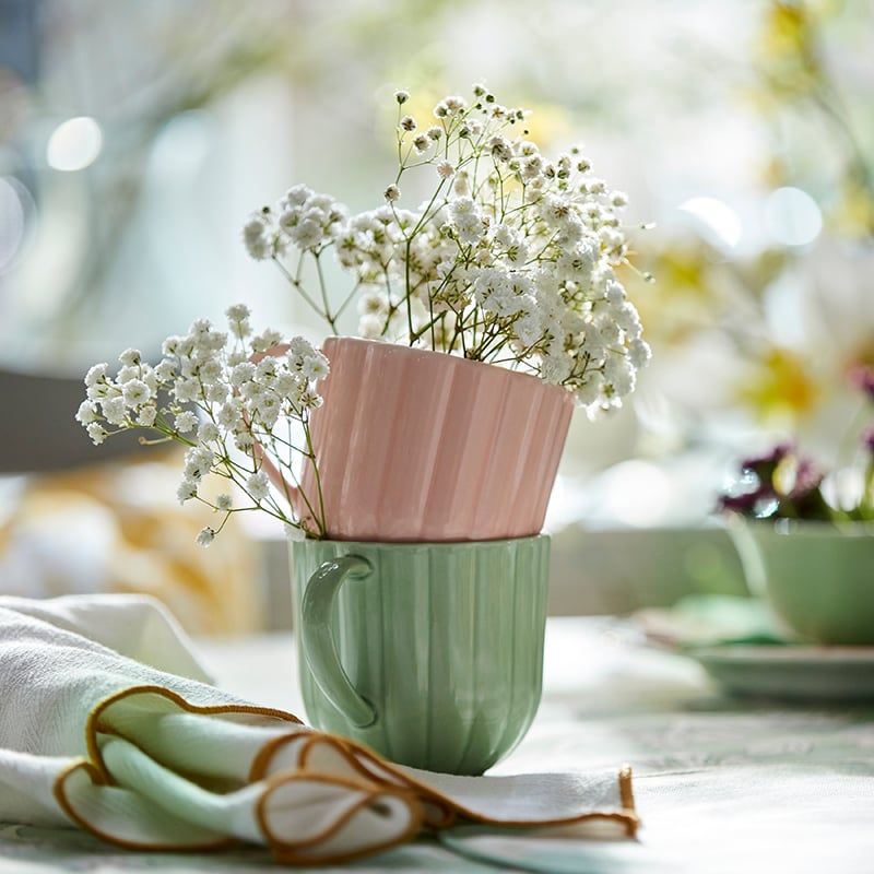 Kollektionen bjuder även på muggar i milda pastelltoner designade av Lisa Hilland.