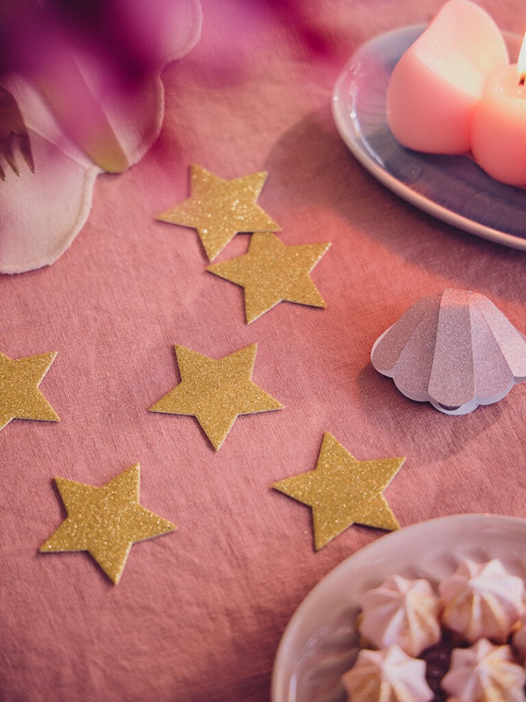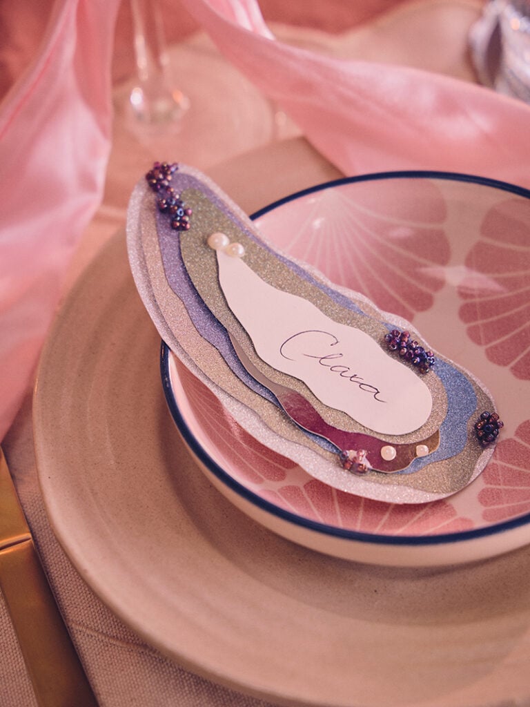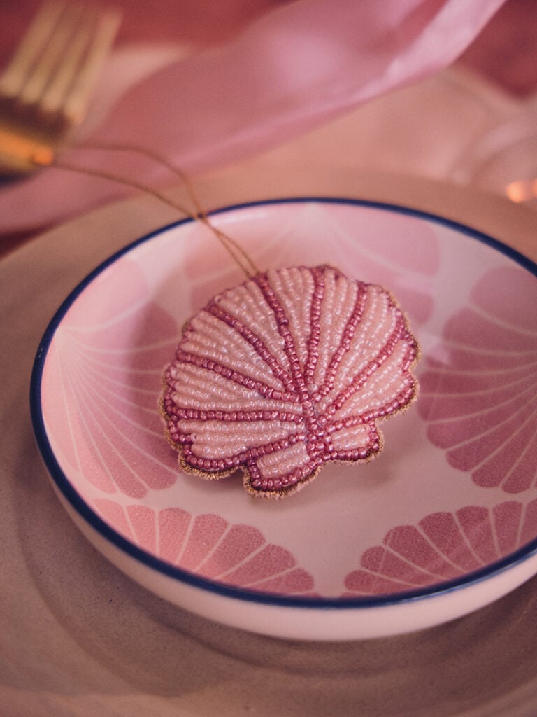 Den här stilen bjuder på en lekfull men varm dukningen i rosa nyanser, gyllene porslin och detaljer som skålar i keramik, skalformade bordstabletter, pärlor och inspiration från havet.