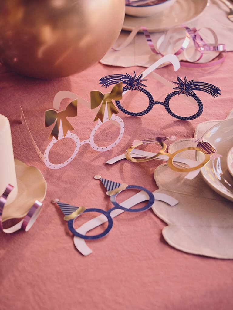 Föredrar du den klassiska stilen? I temat Chrome & Glitter hittar du detaljer för en mer klassisk nyårsdukning. Här syns förutom detaljer i krom och mörkblått även stjärnkonfetti och silvergirlanger.