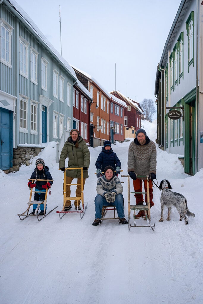 Røros, med sina snörika vintrar, inbjuder till vinteraktiviteter utomhus, och hos familjen står sparkarna alltid redo utanför ytterdörren.