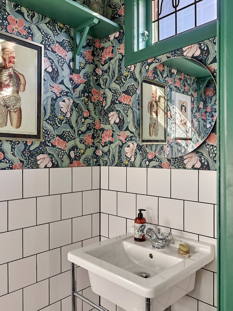 – Jag tror egentligen vi hela tiden vetat hur vi vill göra men att man sen behöver övertala hantverkare och vänliga vänner som kommit med råd om hur saker blir billigare och enklare … Många gånger har vi fått kämpa för att bevara husets själ, som när vi valde att behålla den gröna marmorspisen intakt istället för att sätta in en kamin. Jag tror mig inte veta bättre än den arkitekt som en gång ritade huset, säger Sofia bestämt. En annan princip vi har hållit fast vid är att lyssna på huset och försöka behålla funkisstilen så långt det går. Det gamla signalsystemet, där en knapptryckning i olika rum får en siffra att dyka upp i köket, fick såklart vara kvar. ”Jag menar, hur kan man inte älska ett hus med en sån detalj?” säger Sofia med ett leende.