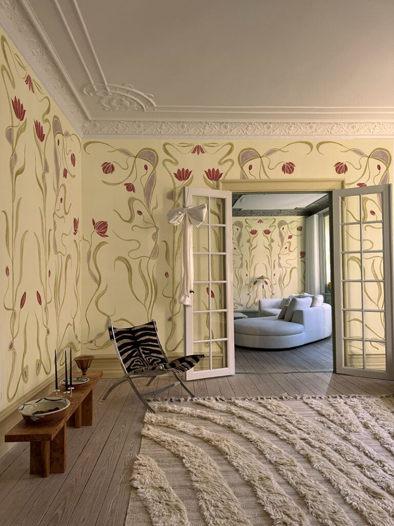 Härliga jugendblommor i ”Botanical Nouveau Butter Yellow” från Belarte Studio.