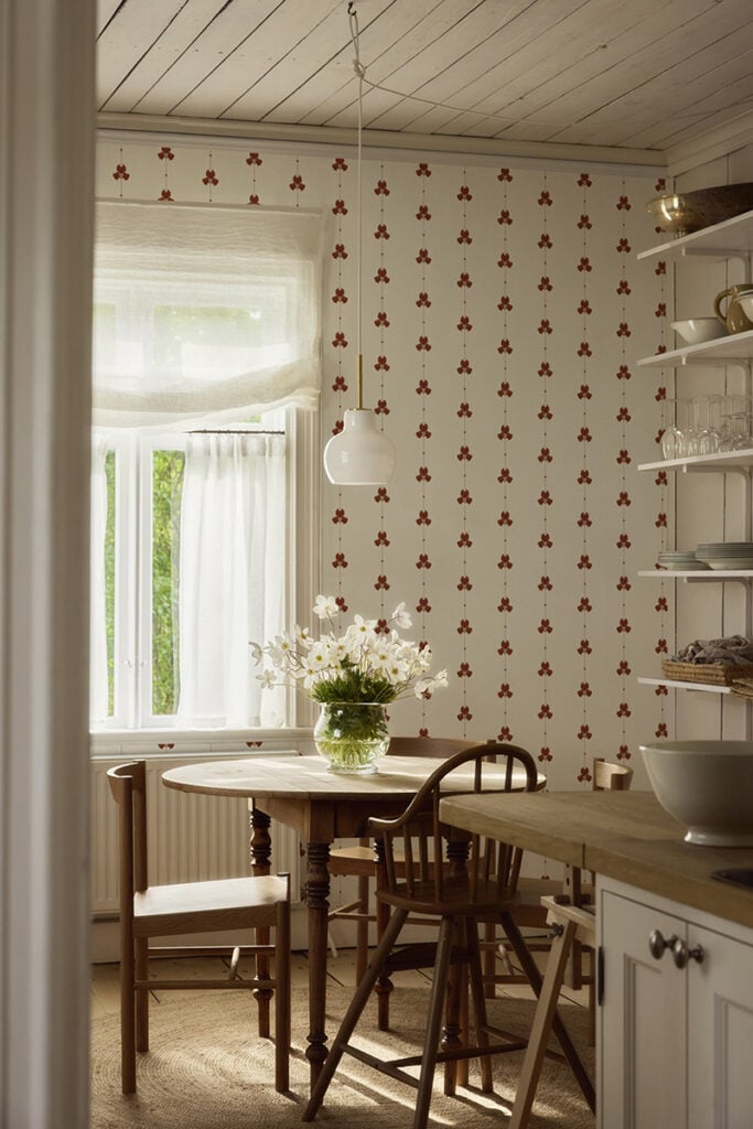 I samarbete med Gotain, som erbjuder skräddarsydda gardiner, har Boråstapeter lanserat Gotains mönster ”Sweet Pea” som tapet. Mönstret är inspirerat av den engelska landsbygden, och resultatet är en tapet som har en nostalgisk och ombonad charm.