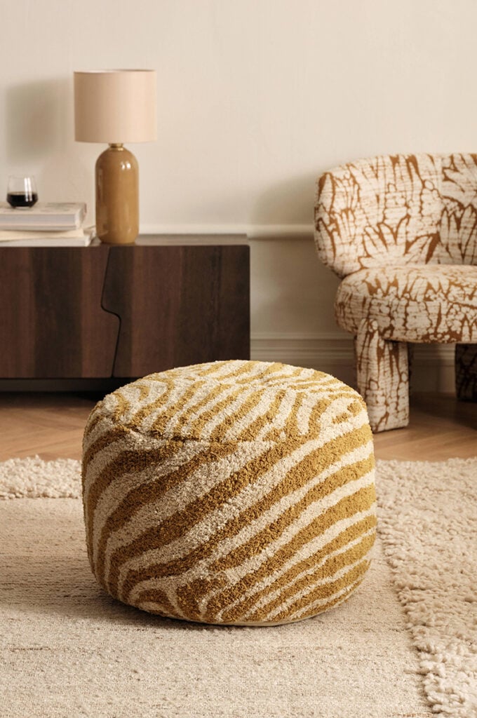 9. Zebramönstrad sittpuff ”Le Grand Air Chenille” från Decotique. Du hittar den här!