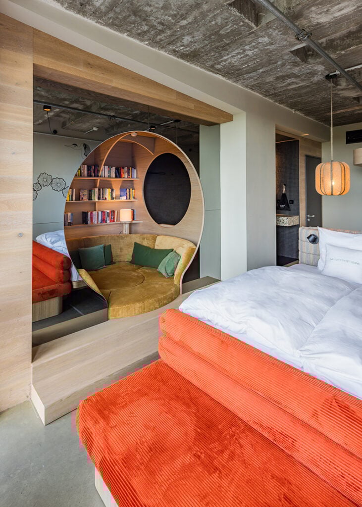 I de största gästrummen har sängen flyttats ut mitt på golvet så att man får utsikt mot antingen djurparken eller Berlins västra del. Dessutom har ett ”läshörn” lagts till, vilket understryker den avslappnade stämningen. Läshörnorna på rummen är en av hotellchefens favoriter, liksom ”Nomad Day Bar” på tredje våningen, som på dagtid erbjuder fräscha smårätter och på kvällen förvandlas till en vinbar.