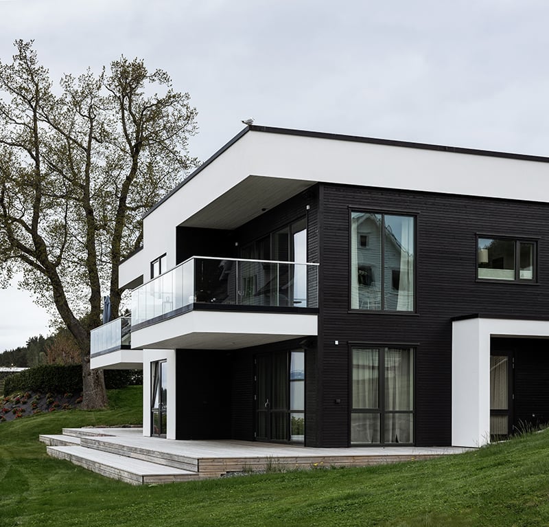 Snyggt, enkelt, men med en spektakulär utsikt som största utropstecken! I den arkitektritade tvåfamiljsvillan råder lugn och harmoni. Brasan sprakar i den öppna spisen och från köket kommer en doft av nybryggt kaffe.