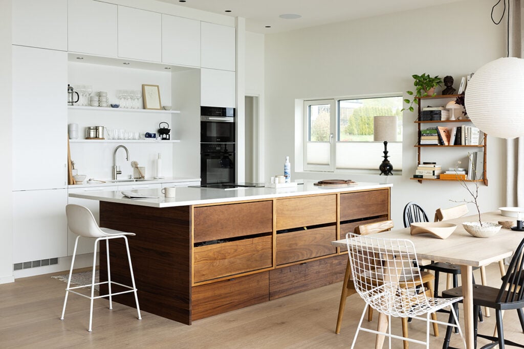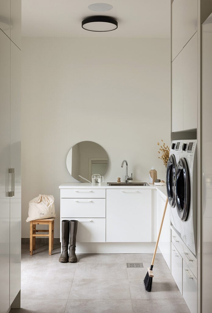 – Vi har tänkt praktiskt och långsiktigt. Huset ska fungera optimalt för en framtida familj. Jag är väldigt glad att det är ett öppet hus, med stora rum, och trivs bra i det stora allrummet med kök och vardagsrum. Här finns stora fönster som låter de vackra omgivningarna bli en del av rummet, säger Karoline.