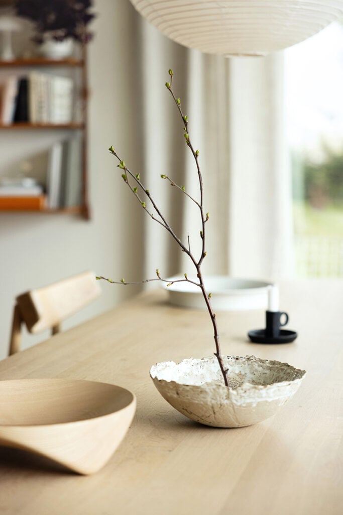 – Solida, tidlösa möbler i naturliga material tilltalar mig. Det är också hållbart. Jag uppskattar att saker varar och kan ärvas vidare till nästa generation. Kontraster inspirerar mig. Trä, sten, glas eller stål mot ett mjukt material som linne eller ull är otroligt fint! Det hänger nog samman med min utbildning inom grafisk design, samt ett allmänt intresse för vackra saker och rum.