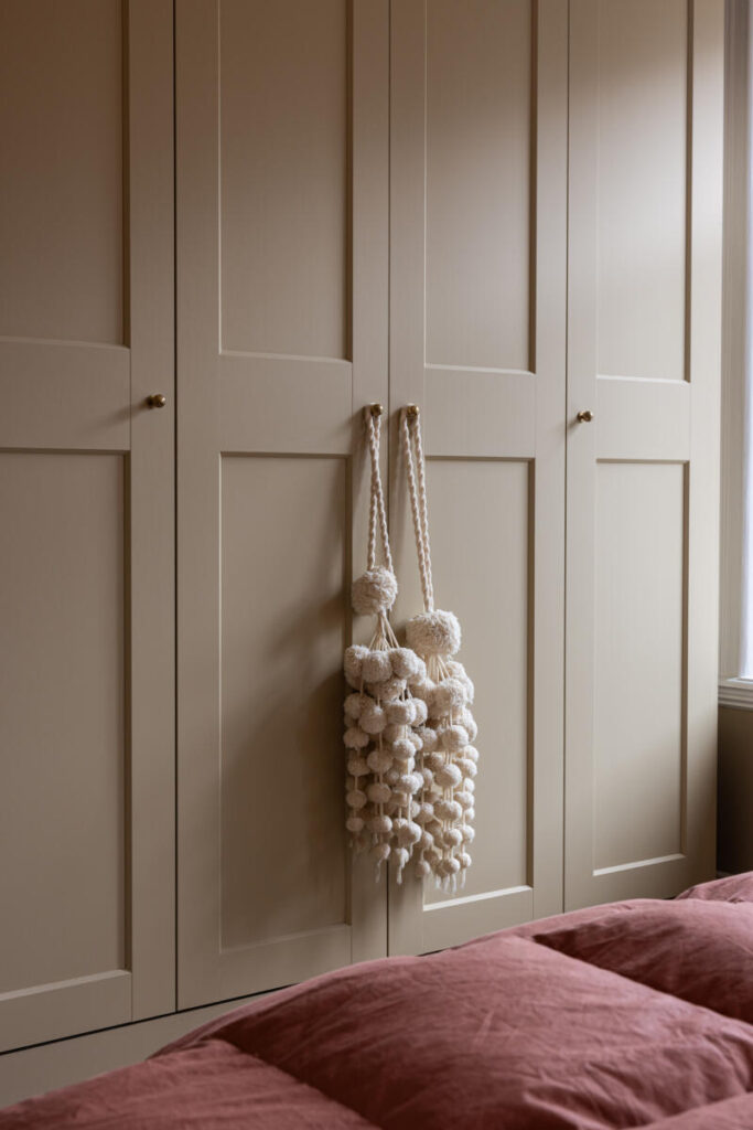 De tre stora rummen i fil fick ljusare färger för att bevara ljuset och rymden så mycket som möjligt. Köksluckorna målades däremot i en djup, mörkgrön ton och fick mässingsknoppar från Byggfabriken.