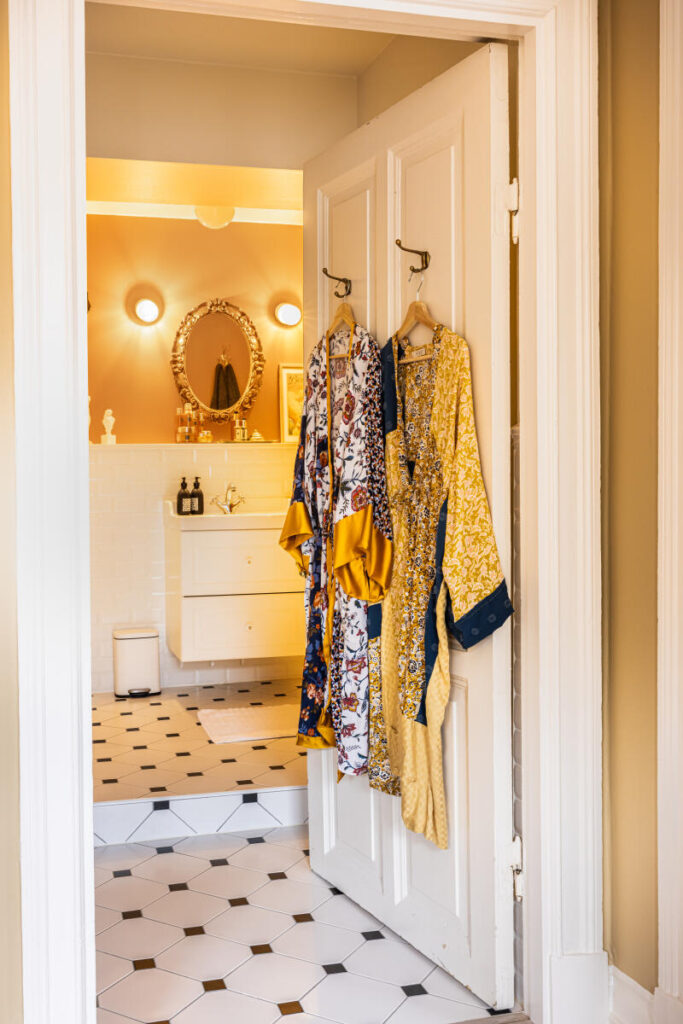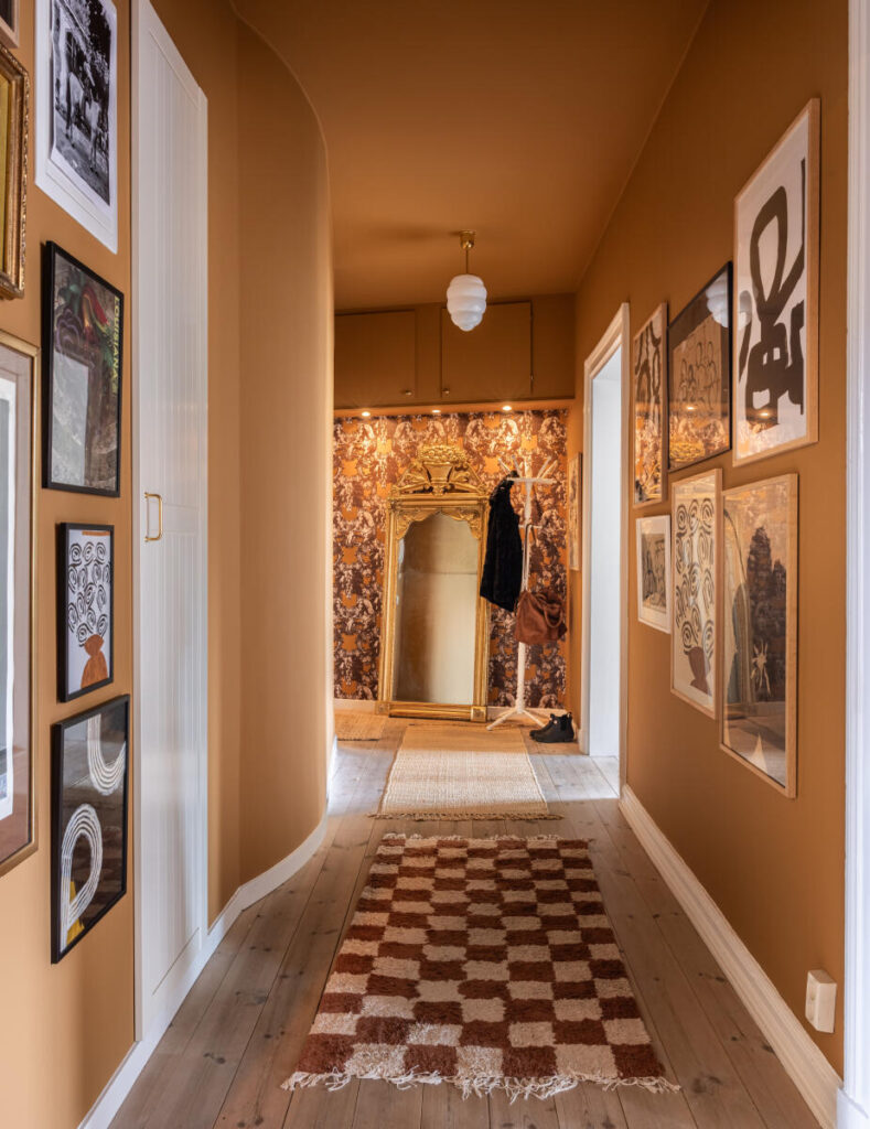 – Eftersom jag är konstnär ville jag skapa känslan av att man stiger in i ett galleri snarare än en hall. Det är varmt och murrigt, och väggarna pryds av både min egen konst och andras, avslutar Amanda.