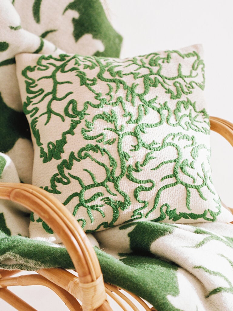 - Dekorativa kuddfodral med organiska mönster och blommotiv.