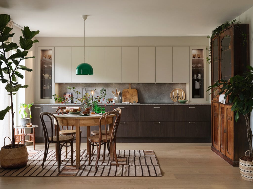 En hyllning till det jordnära och hållbara – där nya hållbara material och vintage blandas för ett hem som känns levande och personligt. Svanenmärkta luckor, återbrukade detaljer och gröna inslag skapar en atmosfär av omtanke. Här handlar det om hållbarhet som känns – val som håller över tid och material som berättar historier. Ett tema som förenar hållbarhet och känsla, för rum som gör gott både för dig och för världen.