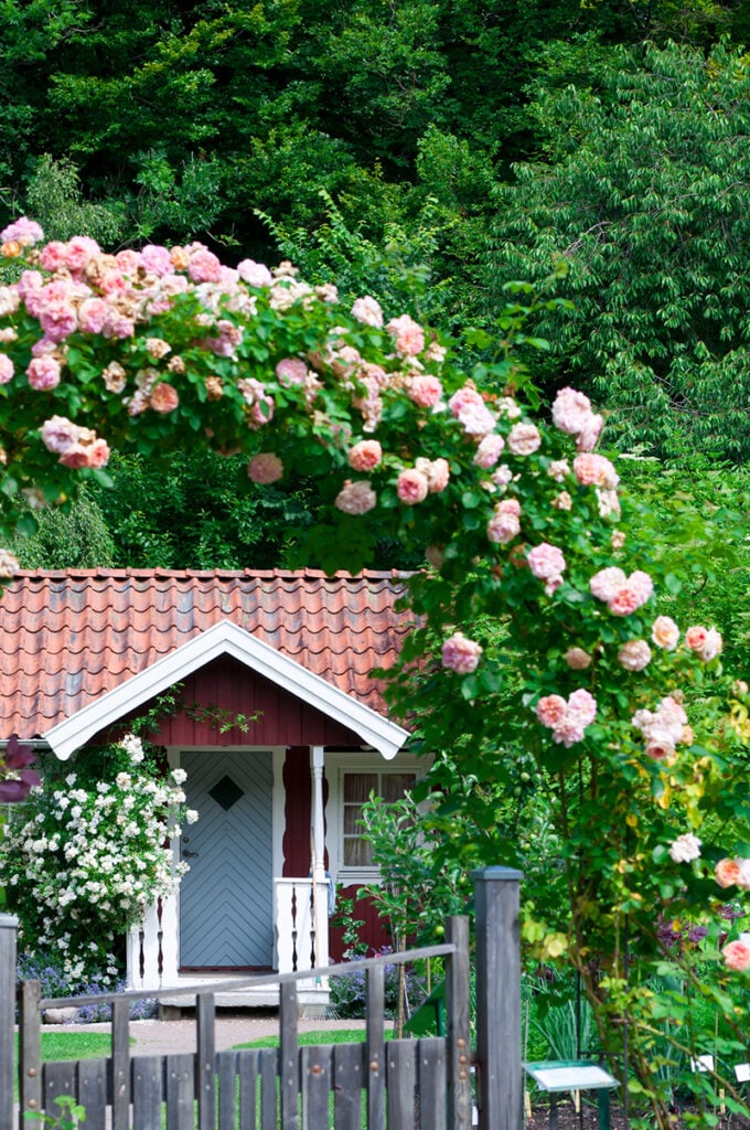 Här blir växterna som bygger rummens väggar extra viktiga. Det handlar om spaljerade träd i många olika former, som avenbok, bok och prydnadsapel, inte bara spaljerade fruktträd. De skapar lummighet utan att ta upp yta på bredden och är därför särskilt värdefulla i smala trädgårdar och på mindre stadstomter. Ett billigare och enklare sätt att skapa ”väggar” eller insynsskydd är att odla dem själv. Klätterväxter som klockranka, luktärt och törnrosas kjortel fungerar utmärkt, liksom dekorativa bönsorter som störpurpurbönan ’Blauhilde’ eller rosenbönan ’Prizegewinner’.