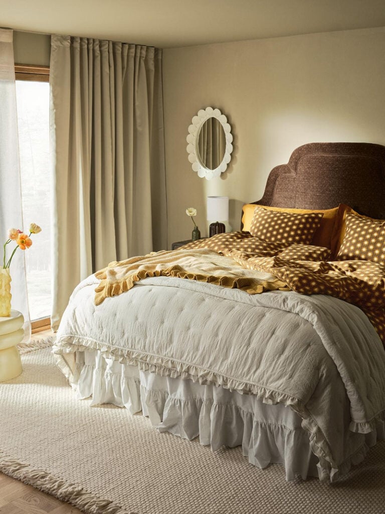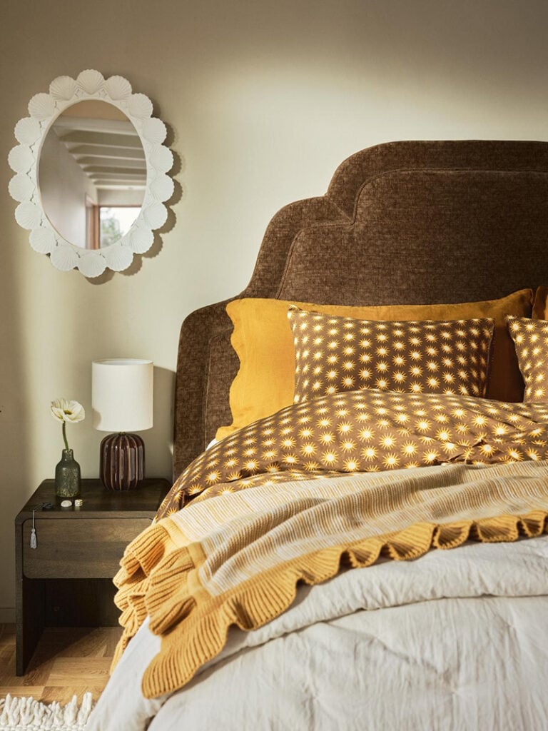 Ett sovrum som ger både avkoppling och energi – det är målet med Ellos Homes nya sovrumskollektion. Bland nyheterna syns poppiga kulörer som ärtgrönt och solgult men även mer dämpade bruna toner och retromönster.