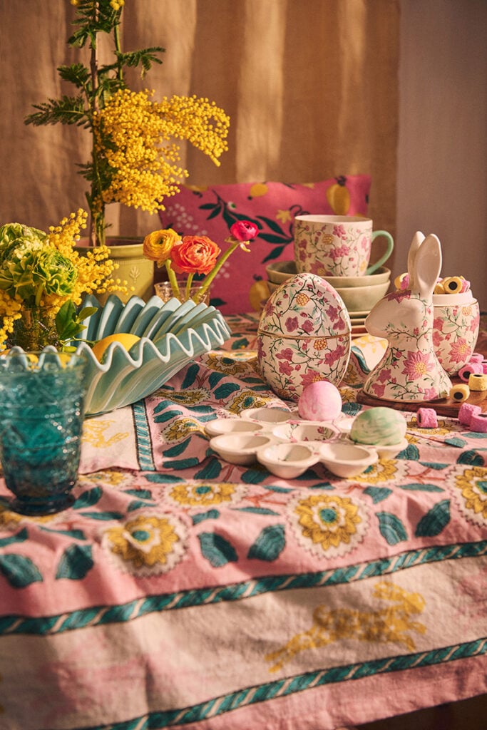Mönster i rosa och grönt, dekorativa ägg till påskriset, söta förvaringsaskar, blommiga textilier och porslin för påskbordet. Om några veckor landar påsken på Indiska – men redan nu kan du spana in bilderna på säsongens nyheter.