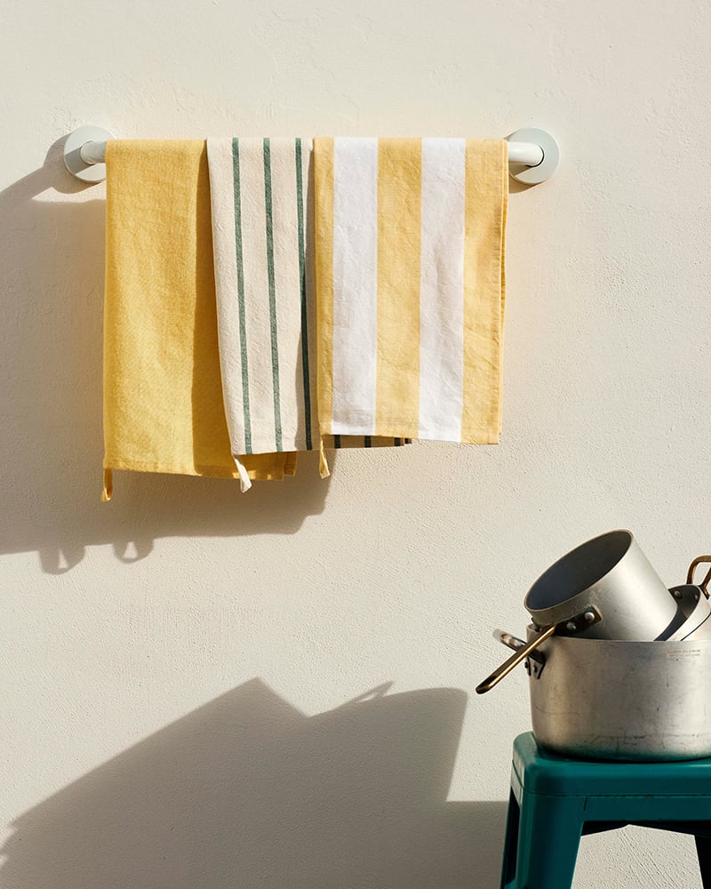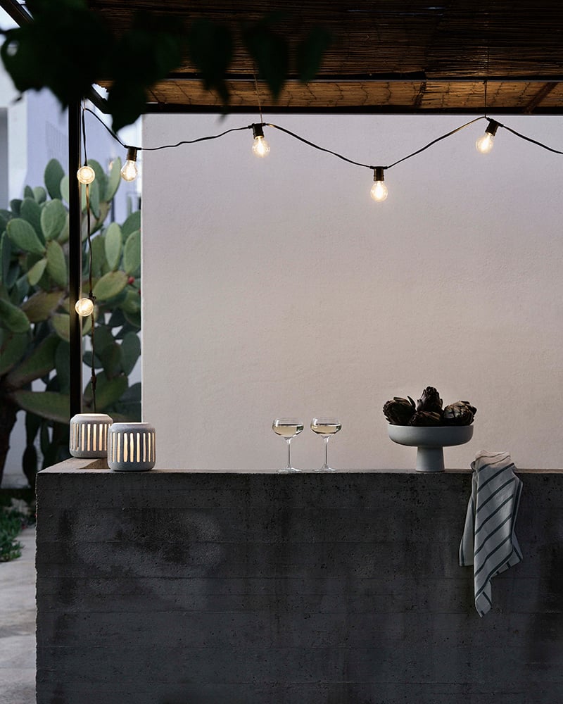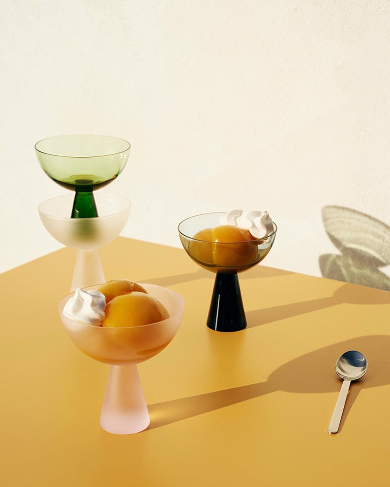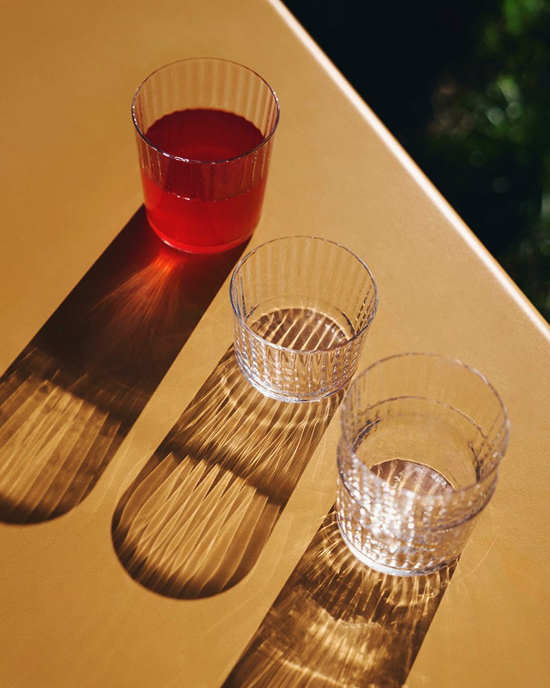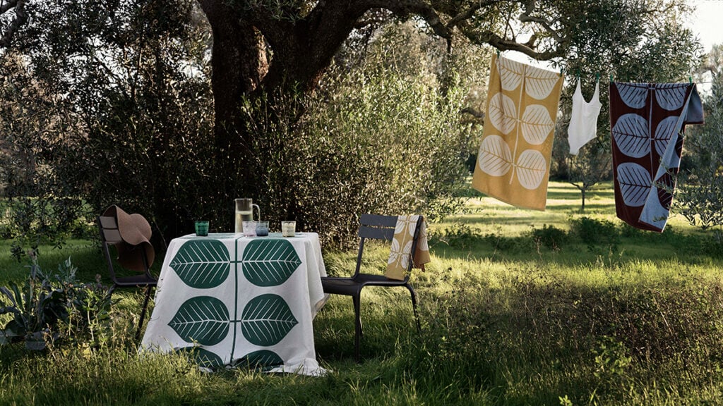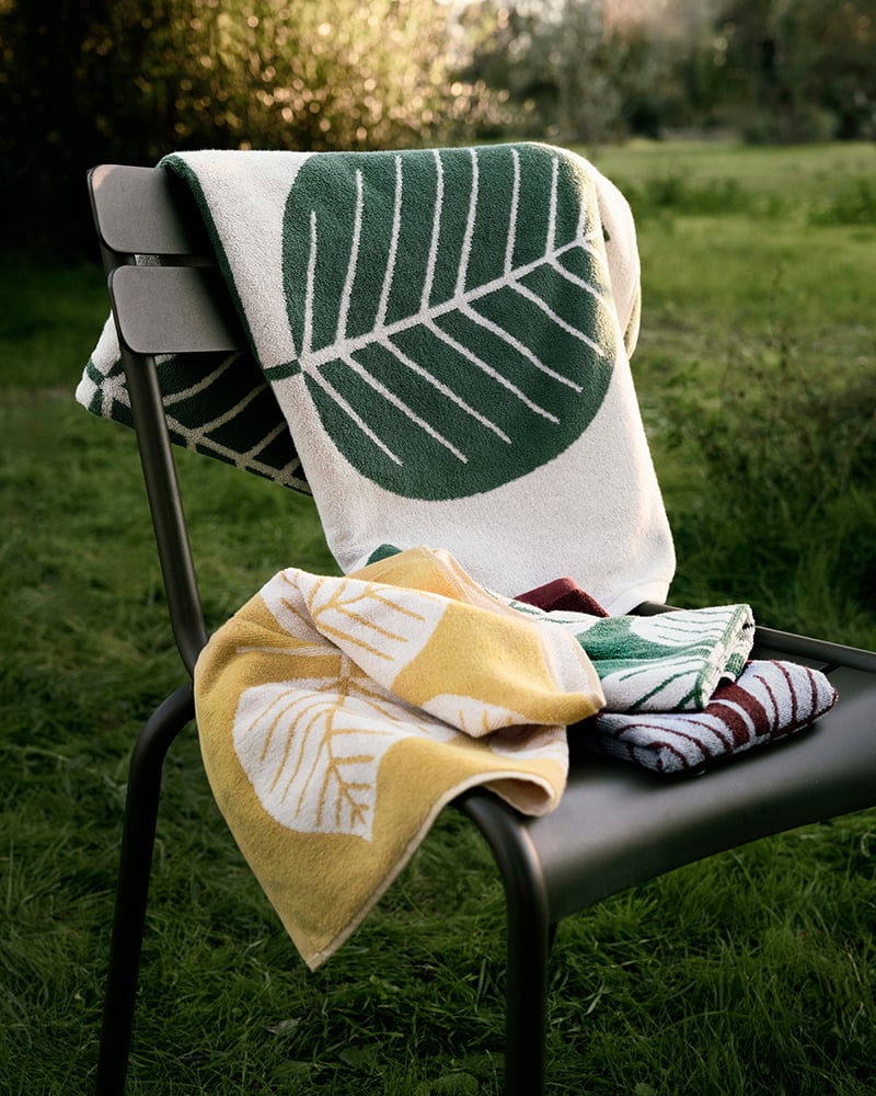 Frostade glasskupor, handdukar och bordsduk med Stig Lindbergs klassiska bladmotiv, färgglada ränder på porslin och utemöbler i metall – det och annat för utomhussäsongen bjuder Granit på inför sommaren 2026. Spana in kollektionen här nedan!