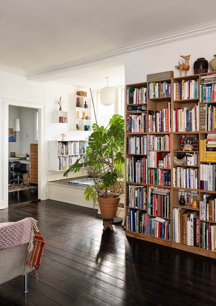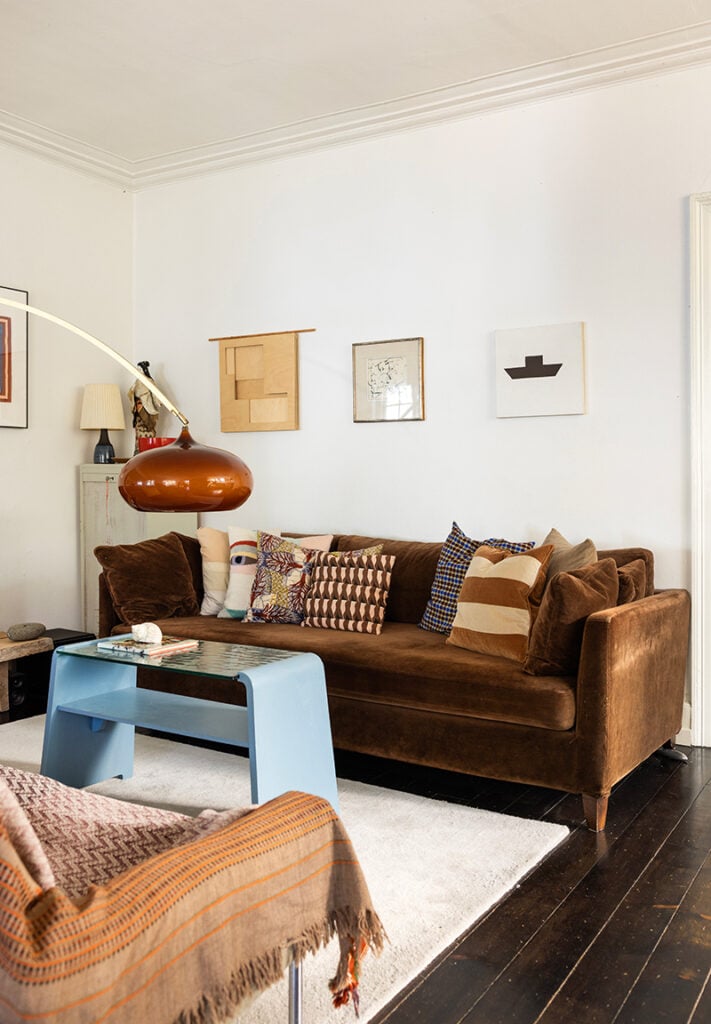 – Jag har samlat så mycket att jag inte behöver köpa något längre. Jag har inte heller något behov av att ändra i inredningen. Vår bruna italienska soffa, som vi köpte för över 20 år sedan, är fortfarande skön och bekväm att sitta i. Och jag skulle aldrig hitta en coolare lampa än den stora böjda golvlampan i stål och glas som står i vardagsrummet.
