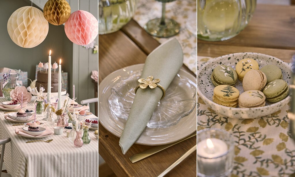 Vårens och sommarens festliga sammankomster och högtider står i fokus i Søstrene Grenes senaste vårkollektion. Kollektionen bjuder på dukningstillbehör och dekorationer som ska göra det enkelt att skapa en rolig födelsedagsfest eller en mysig eftermiddagsfika i trädgården. Här finns allt från ljus i pastellfärger till servetter, ljuslyktor, servettringar, presentförpackningar och söta hållare för placeringskort. Se hela kollektionen här nedan!