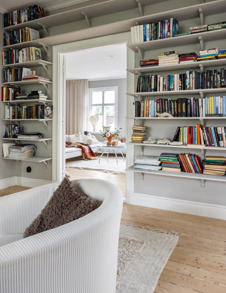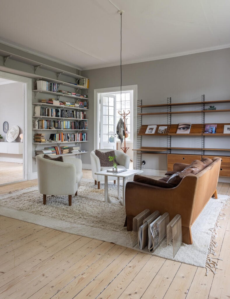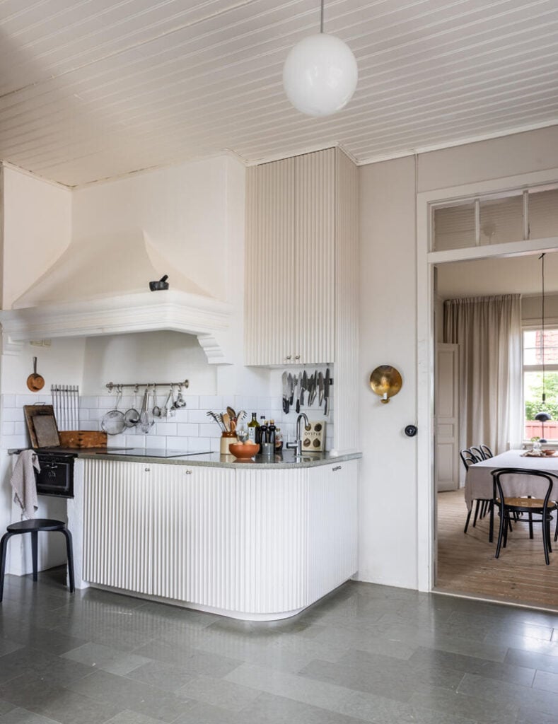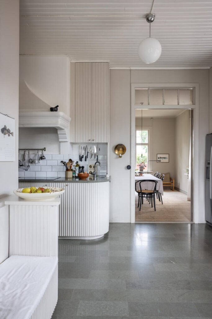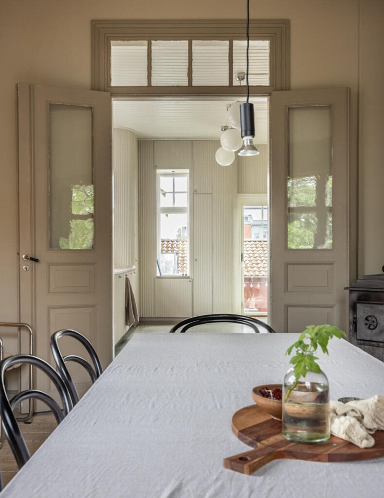 – Ibland slår det oss igen hur vackert det är med knarrande trägolv, munblåsta fönster, högt i tak, rummen i fil och alla pardörrar.