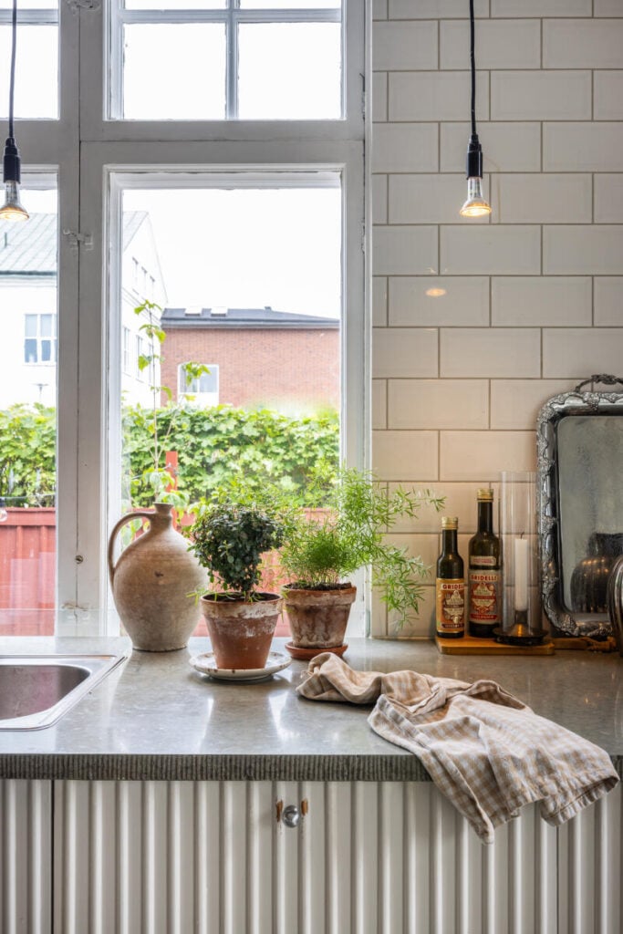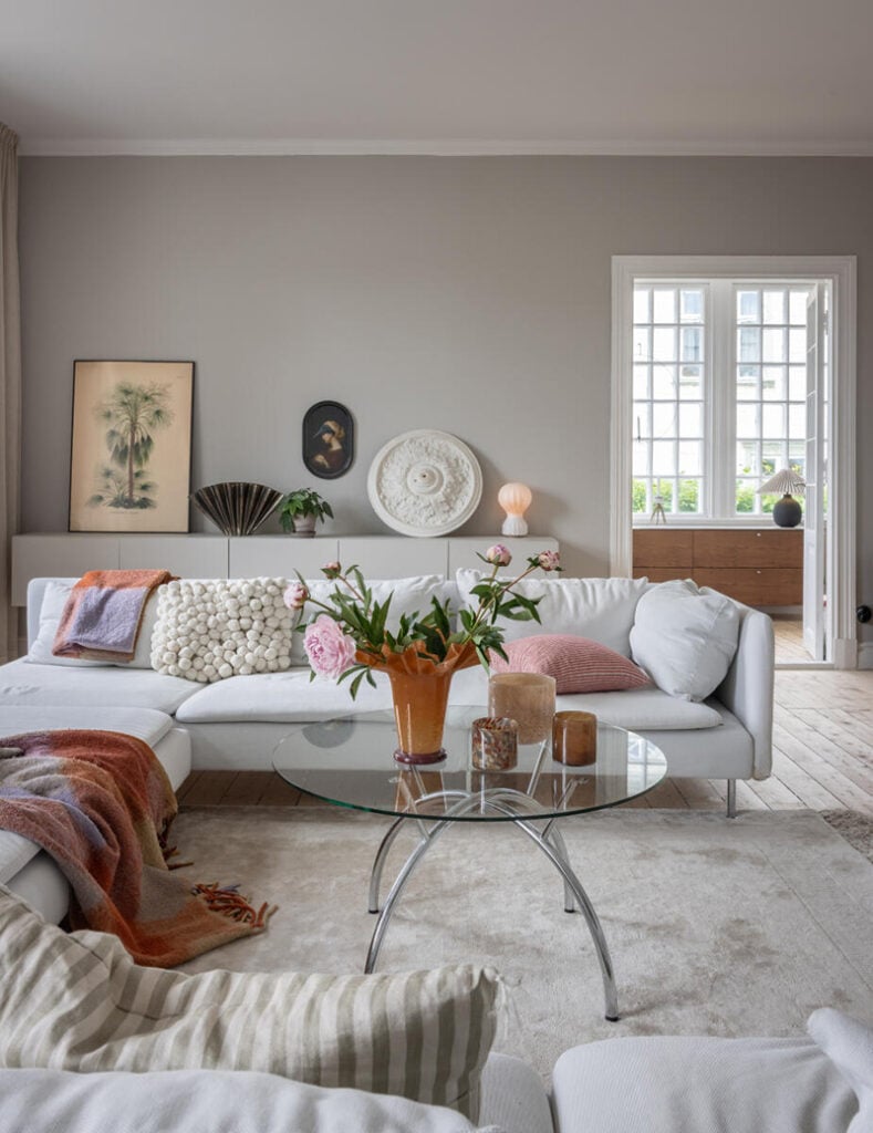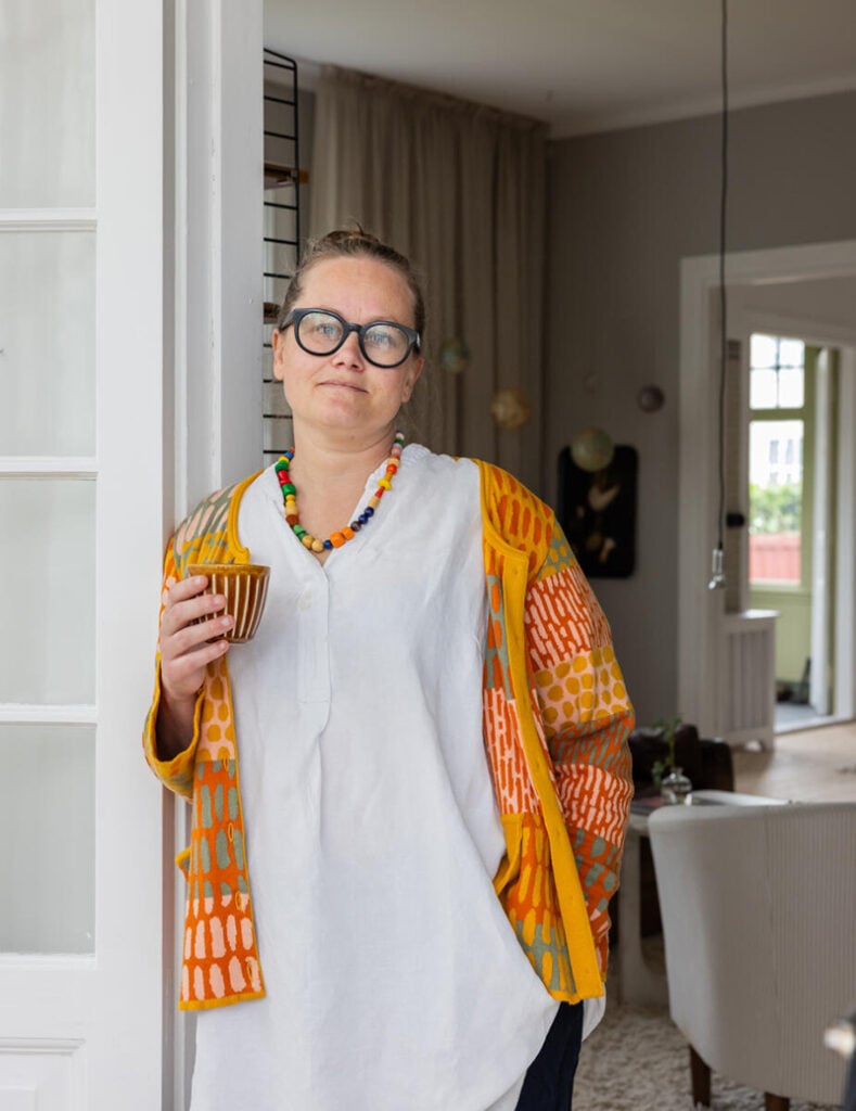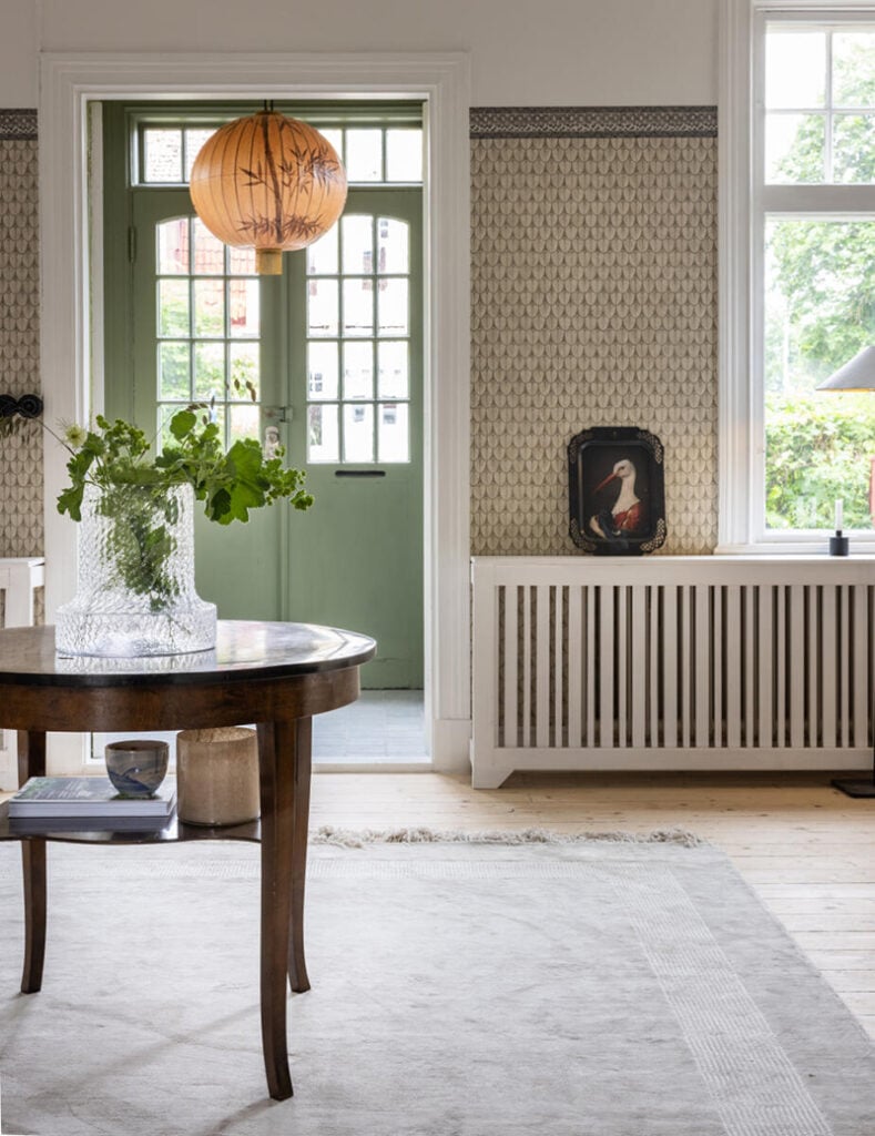 – Eftersom vi aldrig bott i ett så här gammalt hus tidigare var det svårt att hitta balansen i början. De första åren inredde vi mest med antika möbler och ting, men den riktiga trivselkänslan infann sig inte helt. Det finns ju så mycket nytt snyggt – möbler, lampor och detaljer som vi inte ville välja bort. Det var först när vi började blanda gammalt och nytt som den extra trivselkänslan kom. Det bästa med hemmet är att det känns hemma varje gång man kliver innanför dörren.