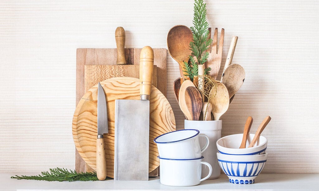 Byt ut kökets prylar i plast till glas, rostfritt stål och naturmaterial som trä, bomull och lin. Det är miljövänliga alternativ som är mer hållbara och hälsosamma.