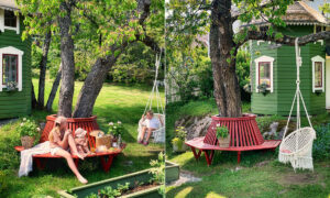 En romantisk kyssbänk runt det gamla körsbärsträdet blev pricken över i hemma hos Hanna.