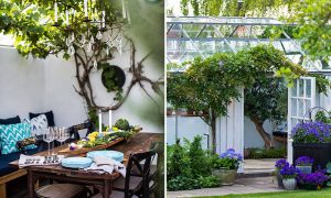 Floristparet Gisela och Jens älskar att pyssla i sitt hus i Bjärred. Här flödar glädjen och kreativiteten i att bygga och dekorera såväl inne som ute. Och i växthuset njuts det av sköna sommarmiddagar under vinrankan i goda vänners lag