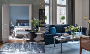 En vilsam palett av blå, gröna och grå nyanser skapar en fin och behaglig helhet hemma hos Linda Brenander. Men lugna färger och lyxiga material till trots – denna bostad är först och främst ett familjehem.