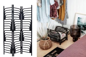 Grafiskt, strikt och inte fullt lika somrigt som den naturfärgade rottingen. Nu stramar vi till det med vackra linjer i svart.