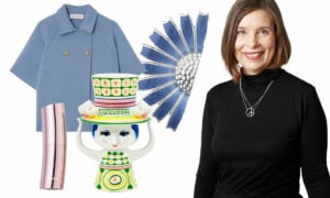 En himmelsblå kofta, handmålat porslin och örhänge med vårkänsla. Karin Ohlsson-Leijon listar sina favoriter just nu!