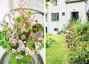 Luktärter, zinnia och stjärn ocka blandas med kål och frökapslar. I Karins buketter är allting tillåtet. Och hon behöver inte snåla tack vare sin stora frodiga trädgård.